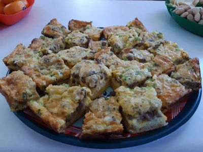 Preheat oven to 325. Lightly grease the bottom of a 9x13 pan and then line the bottom of the dish with crescent dough. Sprinkle the sausage over the dough. In a separate bowl, mix cheese, eggs, green peppers (if used), oregano, salt and pepper. Pour and spread over the sausage in the casserole dish. Bake 25 to 30 minutes or until eggs are cooked through.